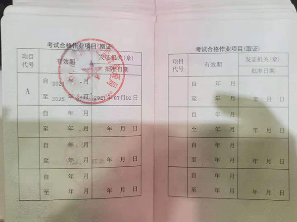 特種設(shè)備安全管理A證證書展示: