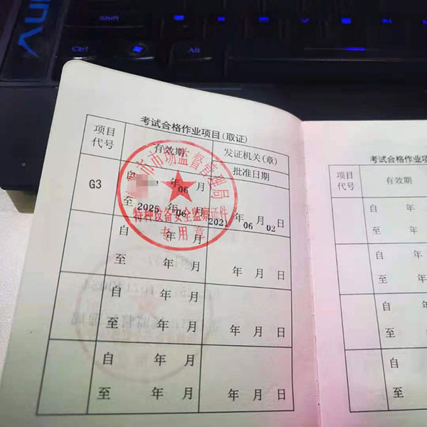 《特種設備作業證》報名:工種鍋爐壓力容器壓力管道管理A 電梯維修T 起重機械管理A 場(廠)內專用機動車輛管理A 起重機指揮Q1 工業鍋爐司爐G1 鍋爐水處理G3 快開門式壓力容器操作R1移動式壓力容器充裝R2 氣瓶充裝P 特種設備安全管理A 起重司機(限門座式起重機)Q2 起重司機(限橋式起重機)Q2 起重司機(限門式起重機Q2 起重司機(限纜索式起重機Q2 起重司機(限塔式起重機)Q2 起重司機(限流動式起重機)Q2 叉車司機N1 蓄電池觀光車司機N2 從業人員上崗證。