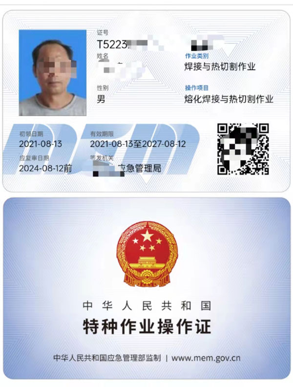 焊工作業(yè):焊工證;