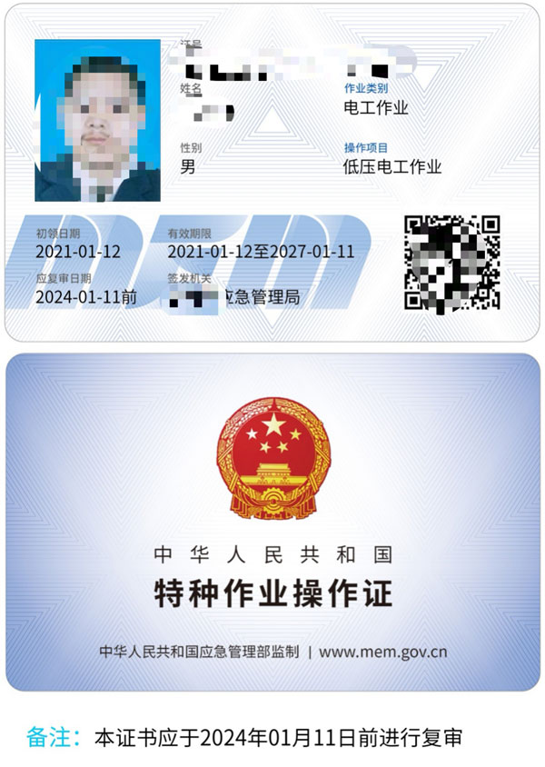 電工證-低壓-高壓,熔化焊接與熱切割作業-焊工證,電力電纜,繼電保護,電氣試驗,防爆電氣作業,高處安裝維護拆除作業,登高架設作業,制冷與空凋設備運行操作作業,制冷與空凋設備安裝修理作業,施工吊裝作業,施工挖裝作業,危化品負責人/管理人員,危化品從業人員上崗證,新辦,(審證,換證,3年一審,6年一換)特種作業人員必須經專門的安全技術培訓并考核合格,取得《中華人民共和國特種作業操作證》(以下簡稱特種作業操作證)后,方可上崗作業。