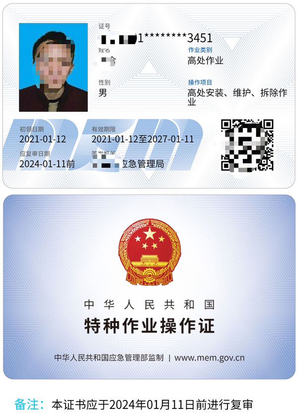 證書適用于利用專用設(shè)備進(jìn)行建筑物內(nèi)外裝飾、清潔、裝修,電力、電信等線路架設(shè),高處管道架設(shè),小型空調(diào)高處安裝、維修,各種設(shè)備設(shè)施與戶外廣告設(shè)施的安裝、檢修、維護(hù)以及在高處從事建筑物、設(shè)備設(shè)施拆除作業(yè)。