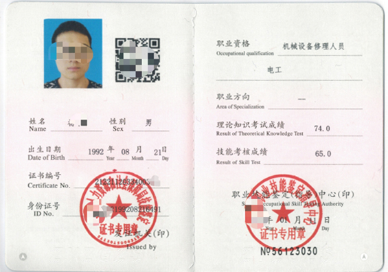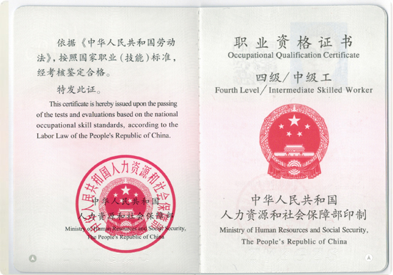 (職業(yè)資格證書(shū)內(nèi)頁(yè))